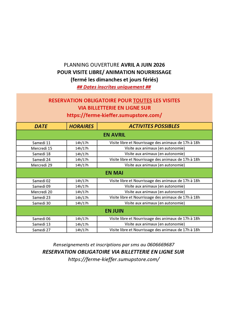 Les visites/ activités sur la ferme se font UNIQUEMENT SUR RESERVATION via la billetterie en ligne sur https://ferme-kieffer.sumupstore.com/
